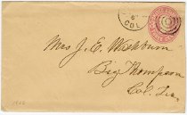 2022.19.2.49A: Letter to Albina Washburn from John Washburn dated June 5, 1866. He writes of arriving to Denver safely, some men he had done business with and talked with, and asking for some money in his account. 2022.19.2.49B: An envelope addressed to Mrs. J.E Washburn Big Thompson Col. Ter. |